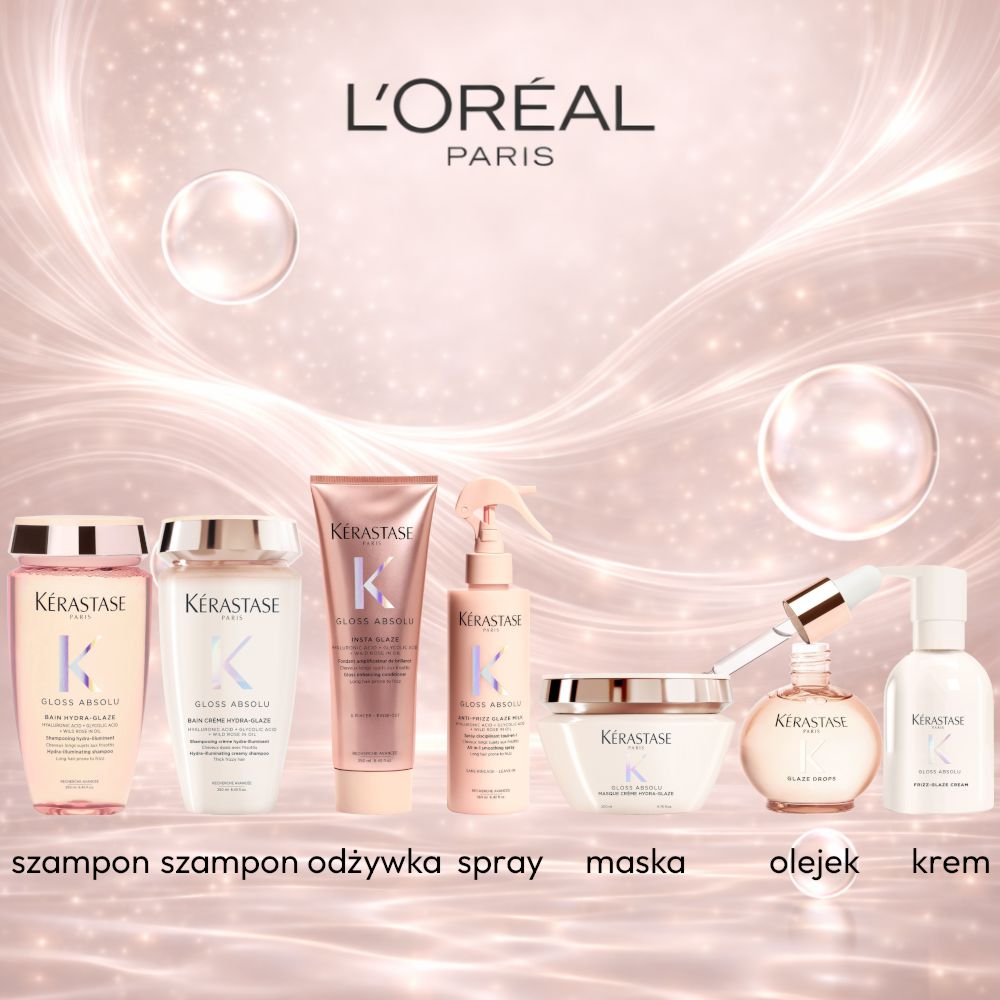 Kérastase Gloss Absolu to profesjonalna gama pielęgnacyjna stworzona dla włosów długich i podatnych na puszenie, które potrzebują wygładzenia i intensywnego blasku. Seria koncentruje się na równowadze między nawilżeniem, pielęgnacją i wygładzeniem, dzięki czemu włosy zyskują lekkość oraz efekt tafli.