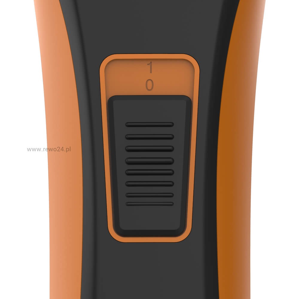 Kolejna funkcja ułatwiająca strzyżenie, znajduje się w przycisku włączającym maszynkę. Fox Orange umożliwia korzystanie z dwóch różnych prędkości obrotowych silnika 5500obr/min lub 6500obr/min. Moc maszynki to 7W.