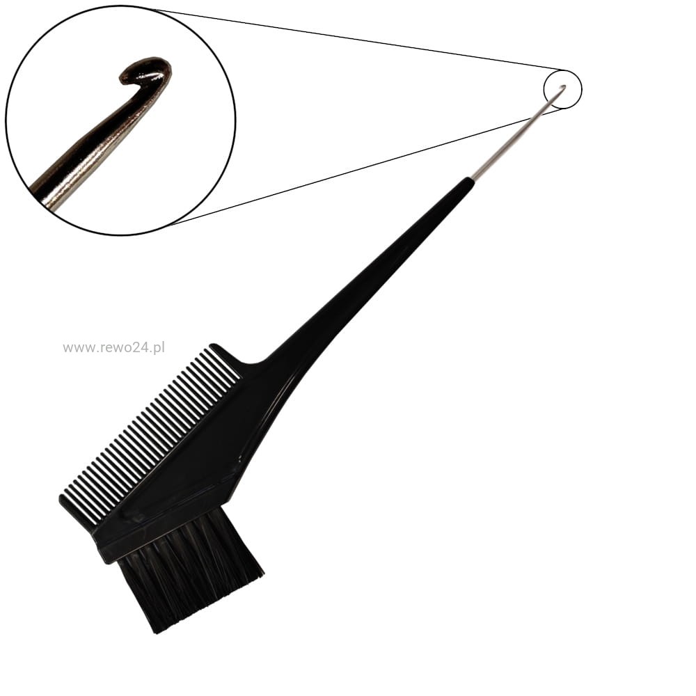 - Metalowe szydełko na końcu rączki do łatwego wydzielania pasemek