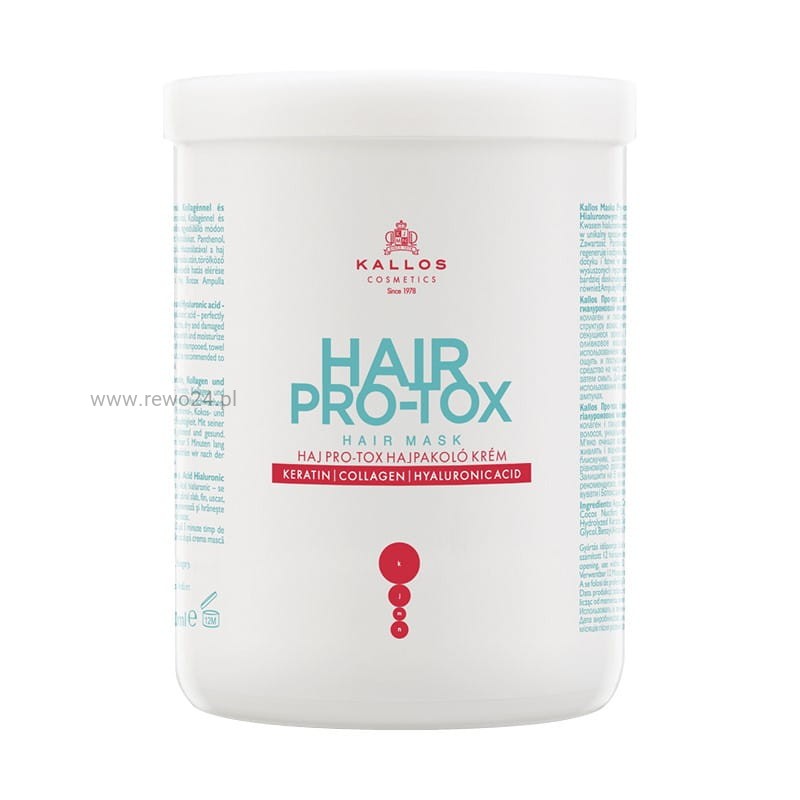 Kallos Hair Pro Tox maska do włosów z keratyną, kolagenem i kwasem hialuronowym 1L