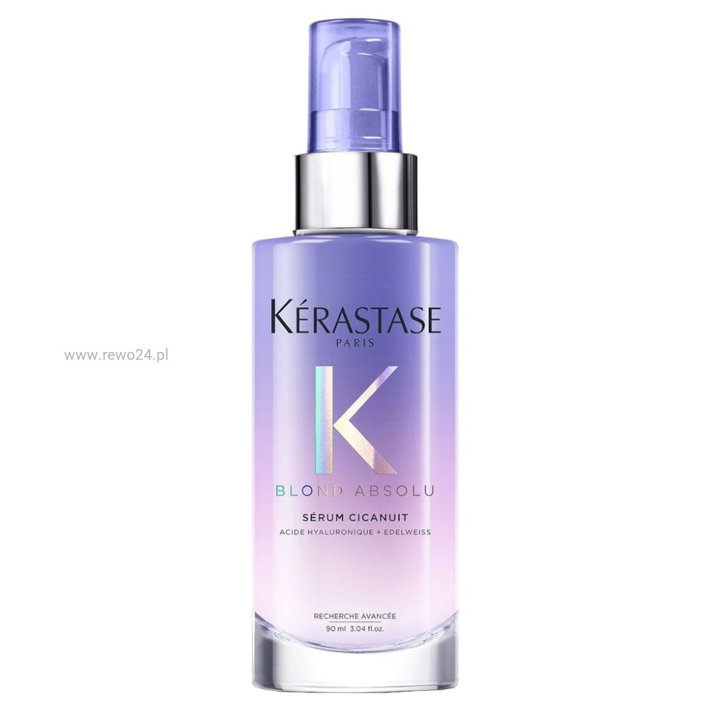 Kérastase Blond Absolu Sérum Cicanuit to nocne serum regenerujące do włosów blond i rozjaśnianych, stworzone z myślą o odbudowie włókien osłabionych koloryzacją i rozjaśnianiem. Lekka, nieobciążająca formuła działa podczas snu, intensywnie nawilża, wzmacnia i wygładza włosy, redukując uszkodzenia powierzchniowe oraz łamliwość. Serum pomaga chronić włosy przed tarciem o poduszkę, ogranicza puszenie i sprawia, że rano pasma są bardziej miękkie, gładkie i podatne na stylizację. Produkt nie wymaga spłukiwania i jest przeznaczony do regularnego stosowania na noc.