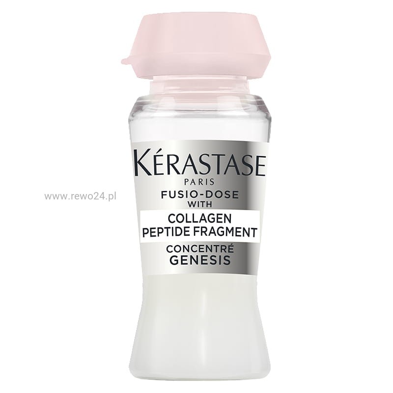Kérastase Fusio-Dose Koncentrat Genesis to intensywnie wzmacniająca kuracja fryzjerska stworzona z myślą o włosach osłabionych i wypadających. Dzięki składnikom inspirowanym pielęgnacją skóry, formuła skutecznie przeciwdziała łamliwości, poprawiając kondycję włosów już po pierwszym użyciu. To luksusowy zabieg profesjonalny dostępny w salonach Kérastase, oferujący natychmiastowe rezultaty oraz możliwość połączenia z boosterem.