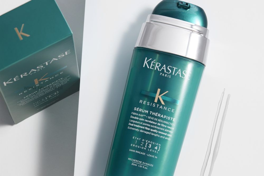 Stosuj Kérastase Résistance Sérum Thérapiste, aby skutecznie odbudować włosy i chronić je podczas każdej stylizacji.