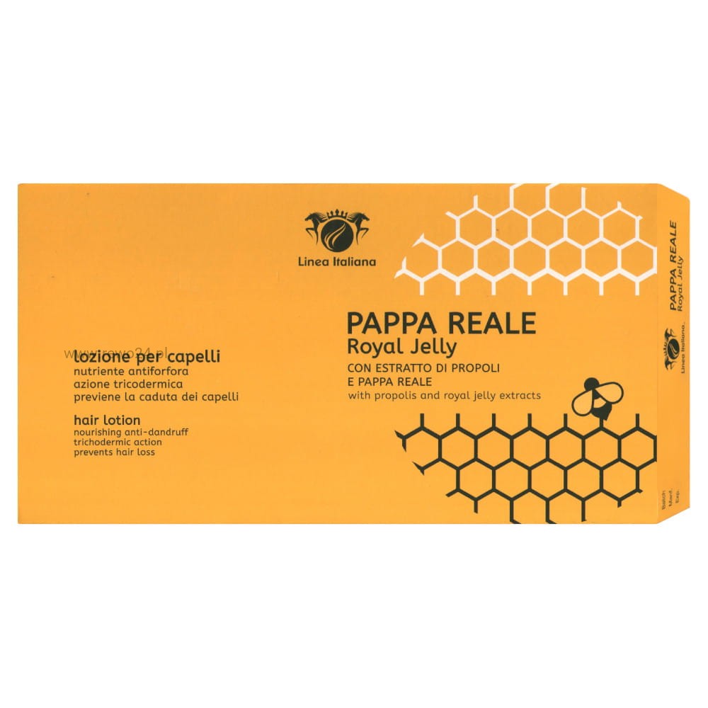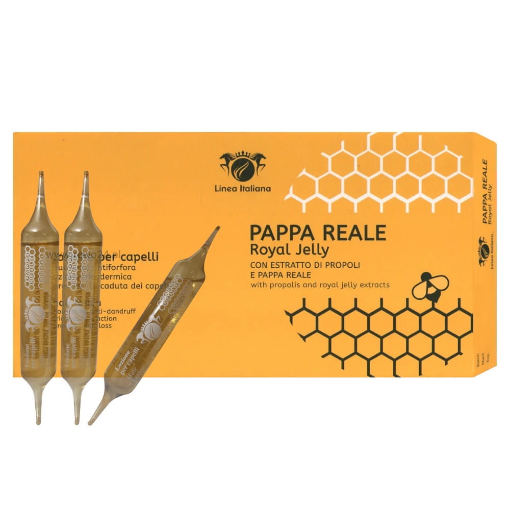 Ampułki Linea Italiana Royal Jelly stanowią rewolucyjne rozwiązanie dla włosów. Dzięki zawartości mleczka pszczelego i propolisu te ampułki zapobiegają wypadaniu włosów, likwidują łupież i kontrolują nadmierną produkcję sebum. Włosy stają się mocne, zdrowe i pełne blasku.