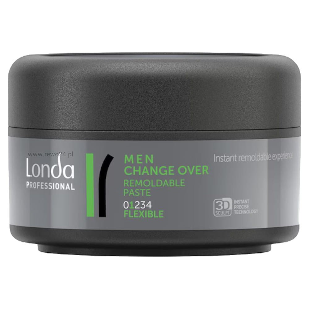 Londa Change Over to elastyczna pasta do stylizacji męskich włosów, łącząca plastyczne utrwalenie z naturalnym, półmatowym wykończeniem. Dzięki technologii Micro-Polymer 3D-Sculpt ta pasta pozwala jednym ruchem nadać fryzurze kształt a potem bez problemu go przestylizować w ciągu dnia.