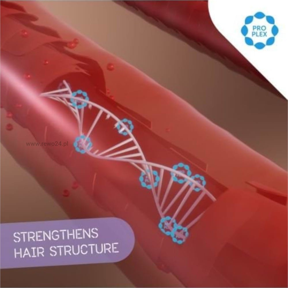 - Technologia PRO-PLEX + kwas maleinowy – wzmacnia wewnętrzne wiązania włosa.