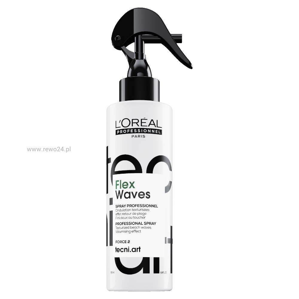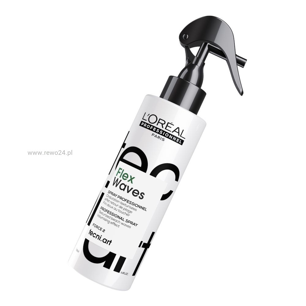 L'Oréal Tecni.ART Flex Waves to profesjonalny spray z solą morską, który tworzy modny efekt Beach Waves i nadaje włosom lekką, naturalną teksturę. Idealny do stylizacji, gdy chcesz uzyskać fryzurę jak po wyjściu z morskiej kąpieli.