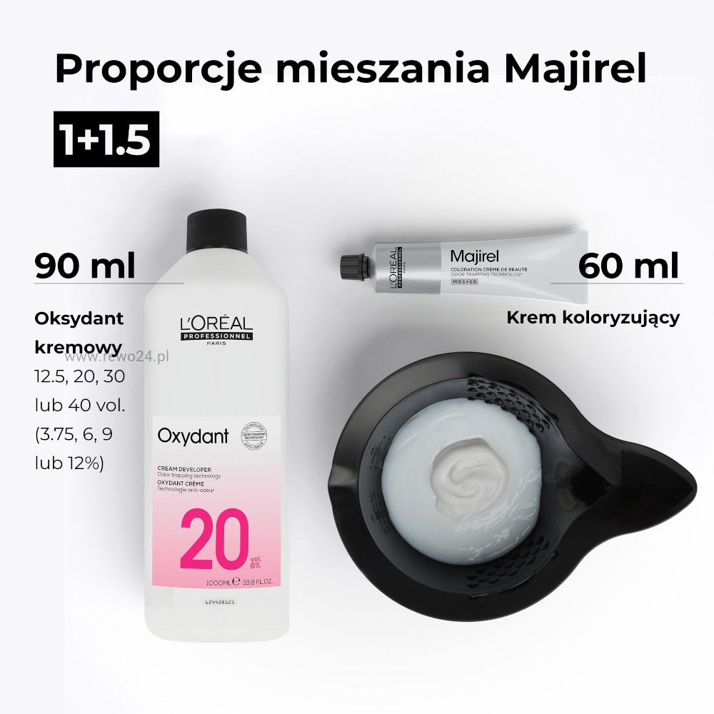 - Dodaj 90 ml aktywatora L’Oréal (3%, 6% lub 9%).