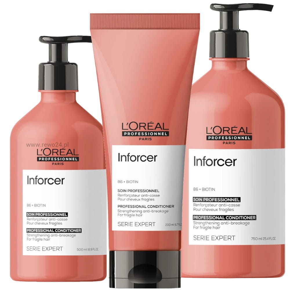 L'Oréal Professionnel Serie Expert Inforcer to doskonała pielęgnacja dla Twoich włosów. Dzięki niej odzyskają one siłę, witalność i piękny wygląd. Wzmacniająca odżywka do włosów osłabionych i łamliwych jest dostępna w pojemności 200 ml lub 750 ml.