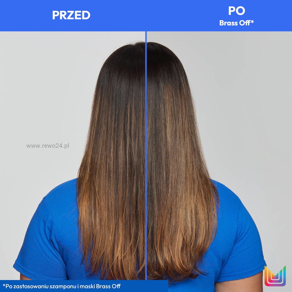 - Umyj włosy szamponem Matrix Brass Off i odsącz nadmiar wody.