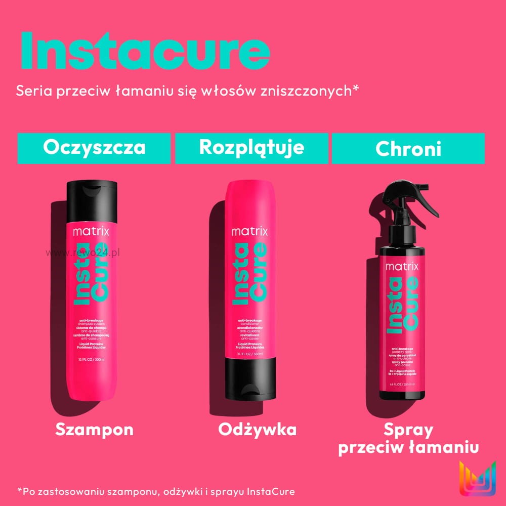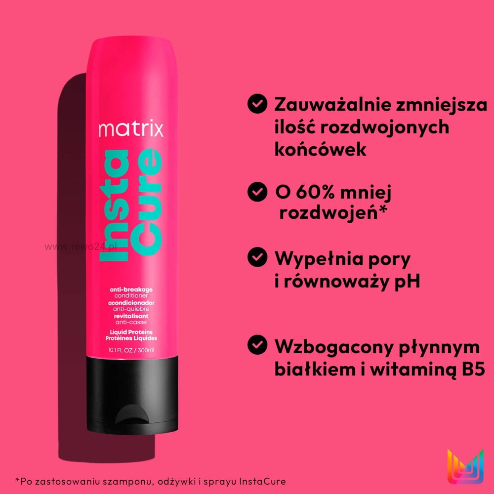 Odżywka Matrix InstaCure to profesjonalna pielęgnacja dla włosów łamliwych, osłabionych i wysokoporowatych. Lekka formuła z płynnymi proteinami roślinnymi wygładza powierzchnię włosa, poprawia miękkość i podatność na rozczesywanie, a także ogranicza łamliwość. Idealna do codziennego stosowania w duecie z szamponem InstaCure.