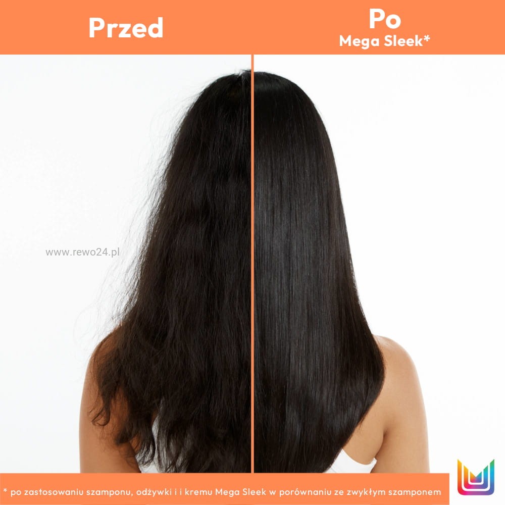 - Umyj włosy szamponem Mega Sleek i odciśnij nadmiar wody.