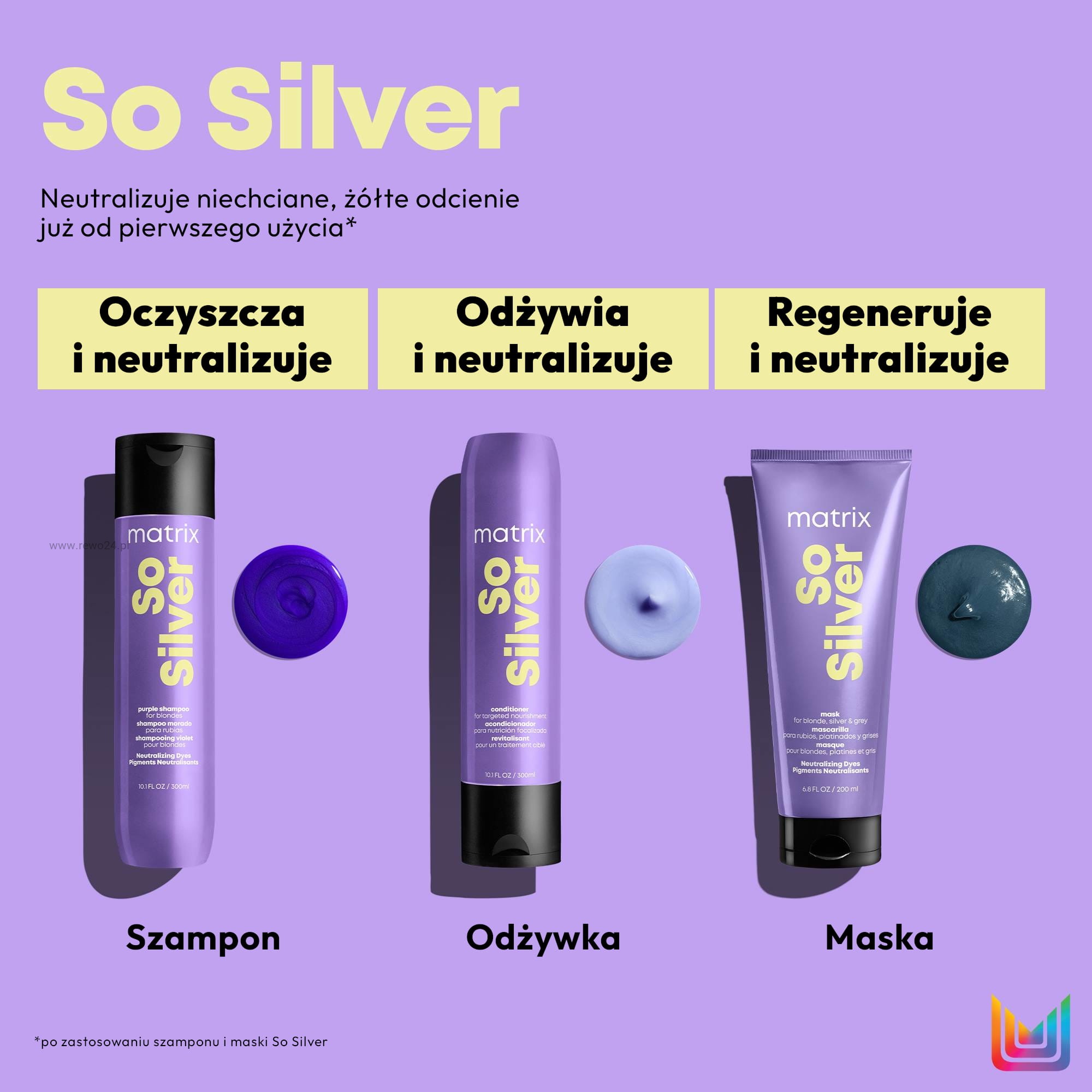 - Dla mocniejszych efektów nałóż odżywkę Matrix So Silver.