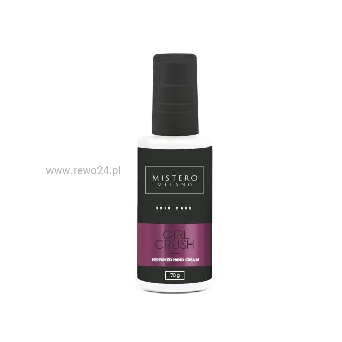 Nawilżający Perfumowany Krem do rąk GIRL CRUSH 70g Mistero Milano na bazie masła shea o pięknej orientalno - kwiatowej nucie zapachowej. Otula dłonie zapachem migdałów, tuberozy, fasoli tonka i esencją kakao. Krem do rąk niweluje uczucie szorstkości i zapewnia dłoniom jedwabistą miękkość. Szybko się wchłania bez efektu lepkości, przynosząc natychmiastowe uczucie komfortu a jego piękny perfumeryjny zapach długo utrzymuje się na skórze dłoni. Zawarty w składzie oraz słonecznikowy wzmacniają barierę lipidową naskórka, zapobiegając nadmiernemu odparowywaniu wody z powierzchni skóry. Witamina E przyspiesza proces regeneracji i rewitalizacji skóry.