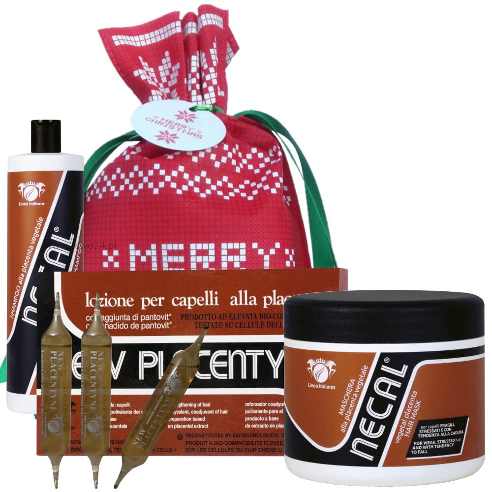 Powiększony świąteczny zestaw Linea Italiana Placenta to kompletny, intensywny rytuał wzmacniający dla włosów osłabionych i wypadających. Do duetu szampon + maska dołącza teraz kuracja w postaci ampułek Placentyne, które działają bezpośrednio na cebulki włosów. Całość zapakowana w świąteczny worek Merry Christmas tworzy prezent pełen troski, elegancji i magii prezentów.