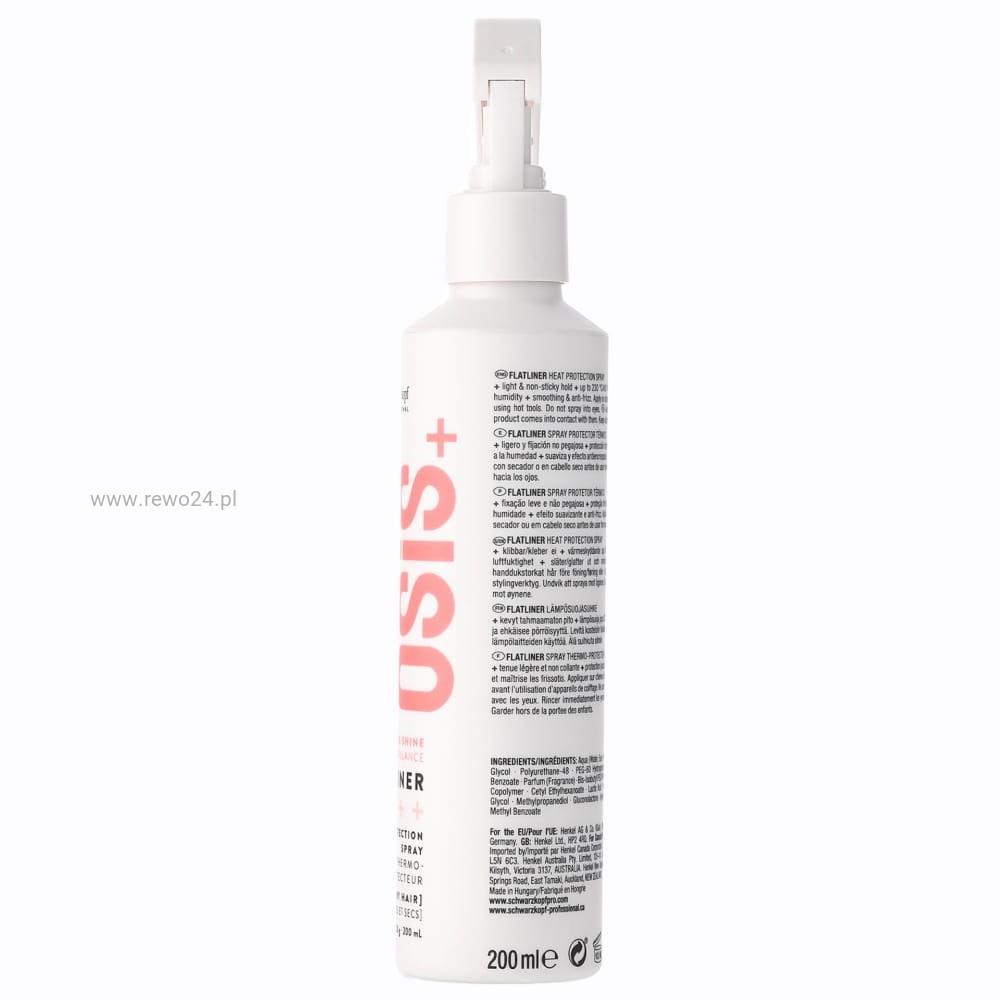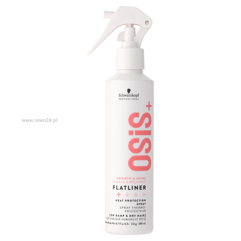 Profesjonalny spray termoochronny Schwarzkopf OSiS+ Flatliner chroni włosy podczas stylizacji prostownicą, lokówką i suszarką, pomaga wygładzać pasma i ogranicza puszenie. Zapewnia lekkie utrwalenie i wsparcie efektu prostych włosów. Formuła z keratyną hydrolizowaną oraz składnikami kondycjonującymi pomaga utrzymać gładkość i połysk. Odpowiedni do każdego rodzaju włosów, idealny do codziennej stylizacji.