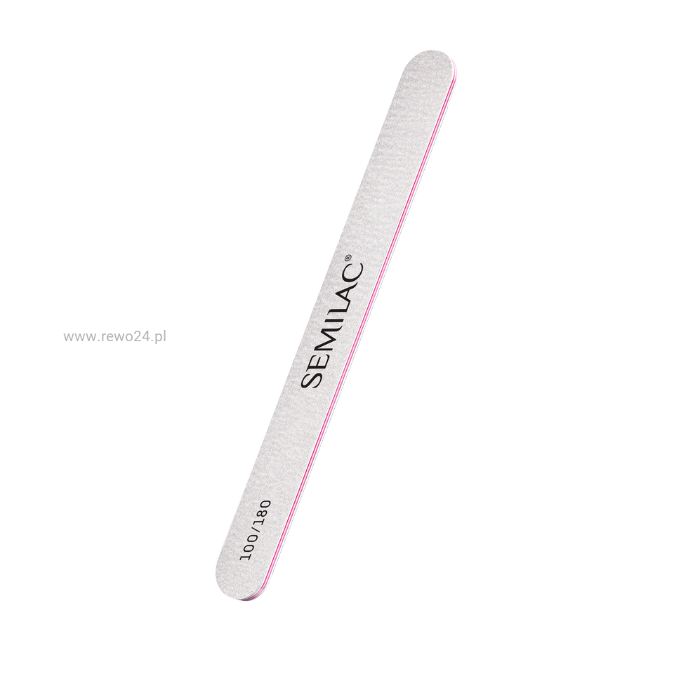 Pilnik dwustronny o gradacji średnioziarnistej, posiada stronę drobnoziarnistą – 180 oraz średnioziarnistą – 100. Prosty kształt pilnika należy do najczęściej spotykanych ze względu na swoją wielofunkcyjność. Opracujemy nim paznokcie naturalne jak i przedłużone. Spiłujemy nim warstwę żelu czy akrylu oraz wymodelujemy paznokieć w konkretny kształt. Idealnie spisze się przy codziennej obróbce paznokcia.