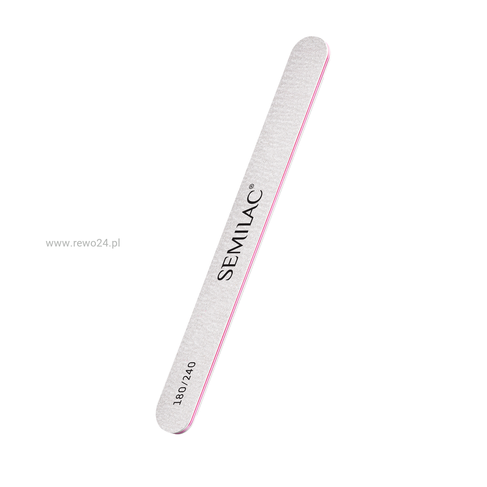 Pilnik o gradacji drobnoziarnistej. Stroną o gradacji 180 nadamy paznokciom ostateczną długość i kształt. Strona o gradacji 240 dobrze sprawdzi się przy matowieniu naturalnych paznokci jak i pracach wykończeniowych na akrylu czy żelu.