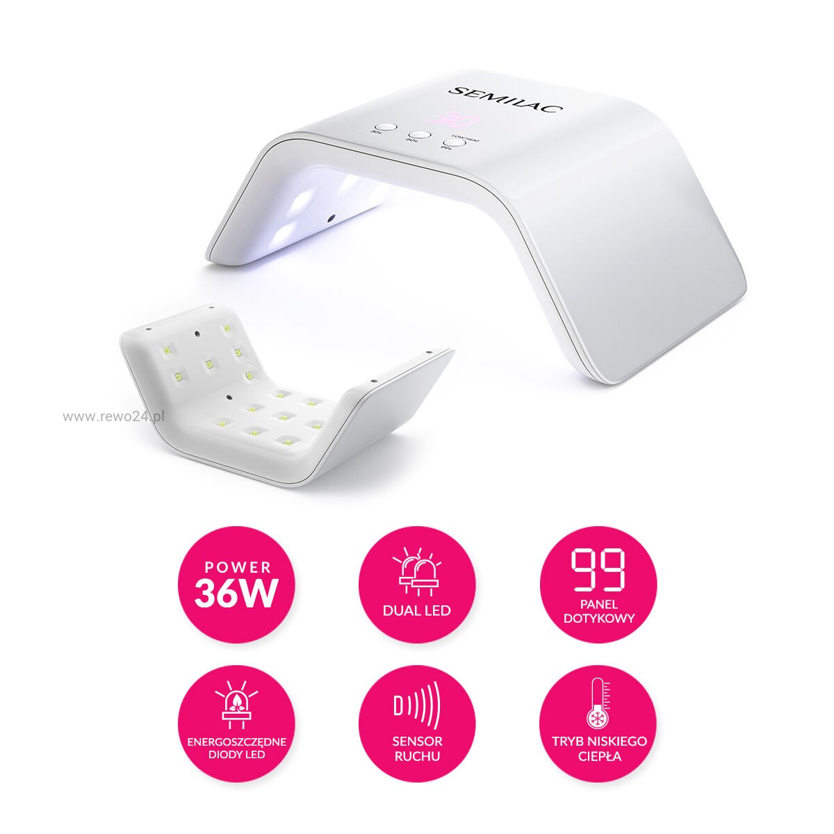 Dodatkowo, profesjonalna lampa z sensorem ruchu i trybem niskiej temperatury zapewnia idealne utwardzenie – zarówno lakierów hybrydowych jak i żelowych.
