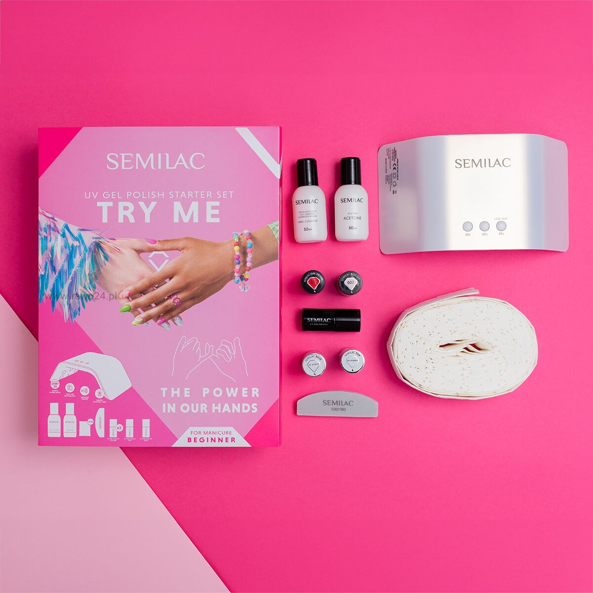 - Wybrany przez Ciebie dowolny lakier hybrydowy Semilac 7ml,