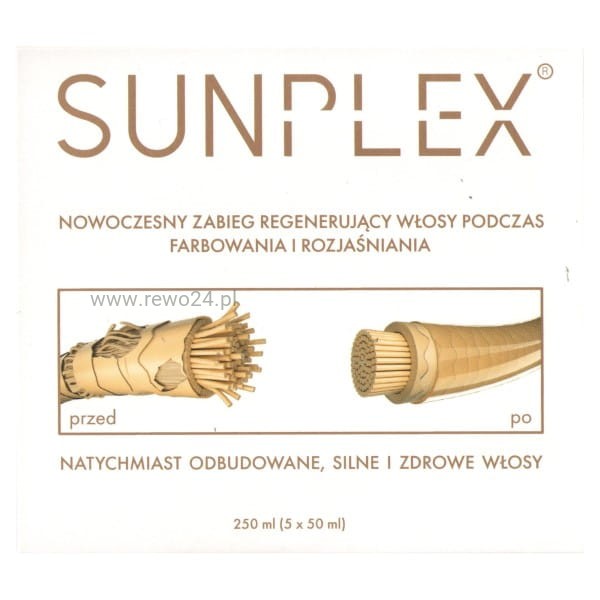 Sunplex to rewolucyjna kuracja regenerująca, zaprojektowana specjalnie dla włosów zniszczonych przez zabiegi chemiczne takie jak farbowanie, rozjaśnianie czy trwała ondulacja. Składająca się z 5 opakowań po 50 ml, kuracja oferuje kompleksową odbudowę i intensywną regenerację włosów, przywracając im zdrowie i witalność.