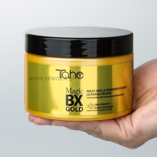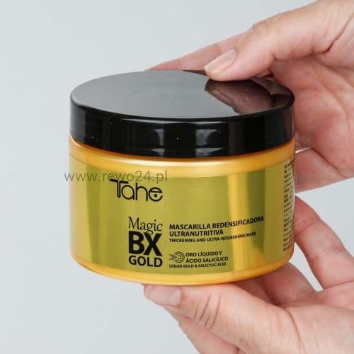 Chcesz po myciu dodać włosom maksymalnej miękkości, połysku i pełni? Dodaj Tahe Magic BX Gold Ultra Nawilżającą maskę 300ml do koszyka i poczuj różnicę już po pierwszym użyciu!